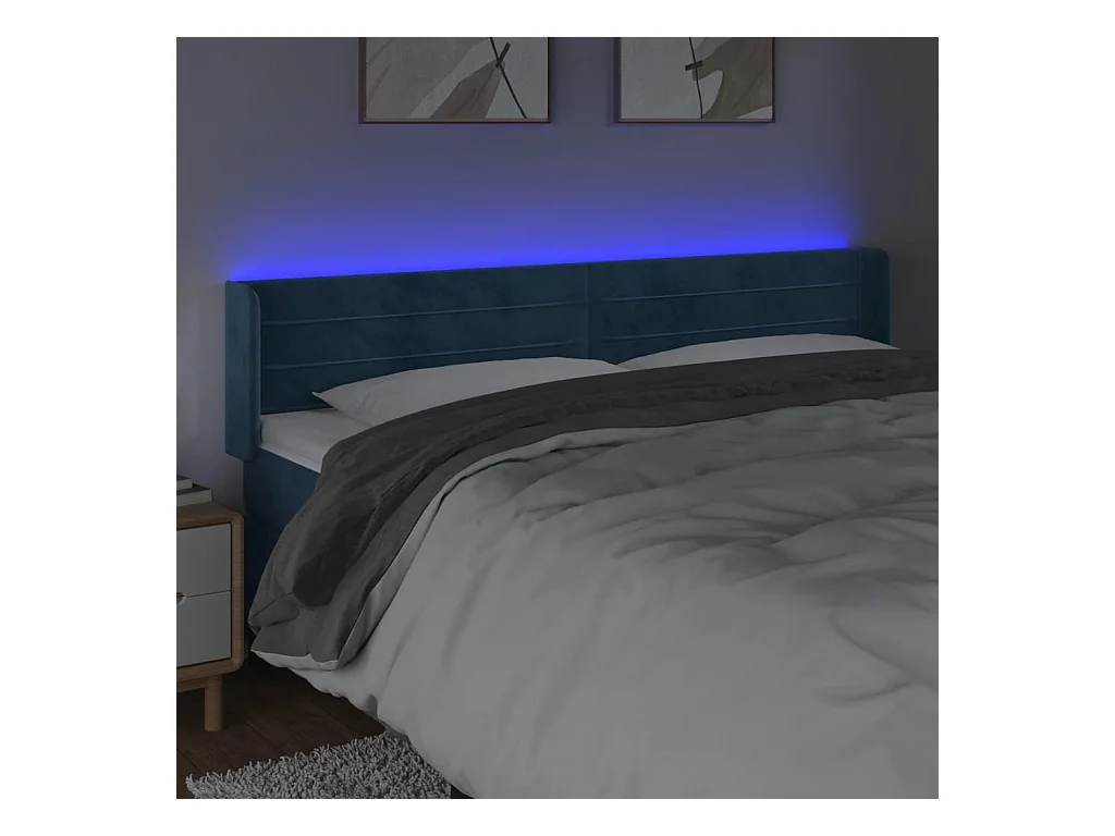 Tête de Lit | Panneau de tête pour lit Moderne à LED Bleu foncé 183x16x78/88 cm Velours