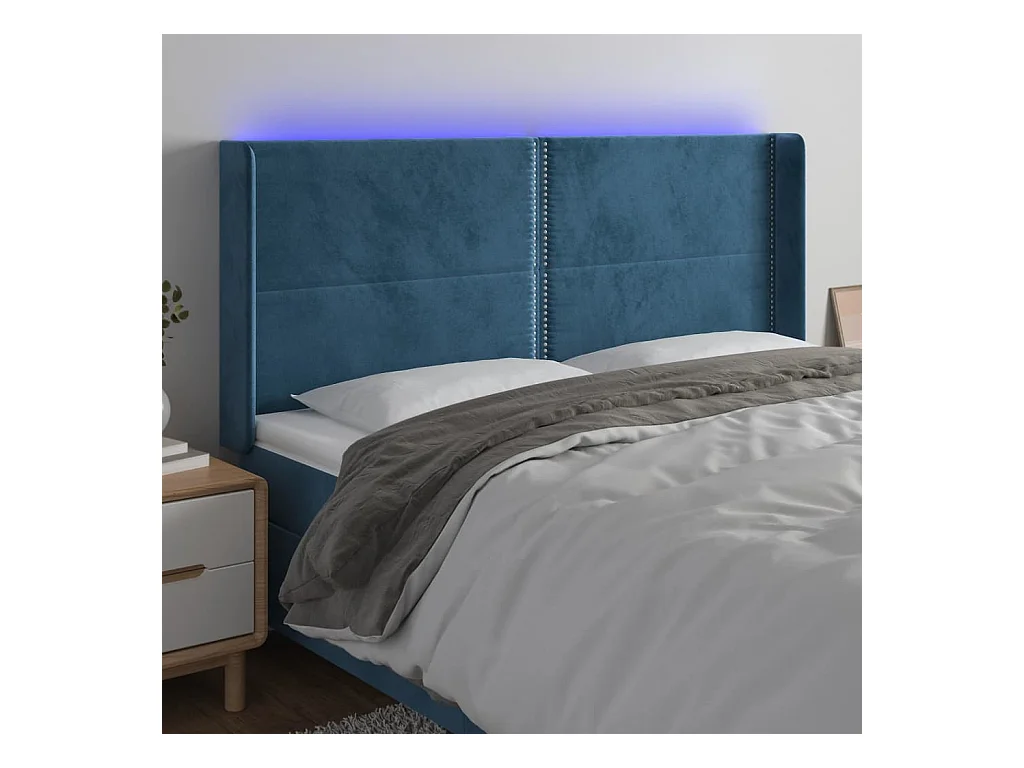 Tête de Lit | Panneau de tête pour lit Moderne à LED Bleu foncé 183x16x118/128 cm Velours