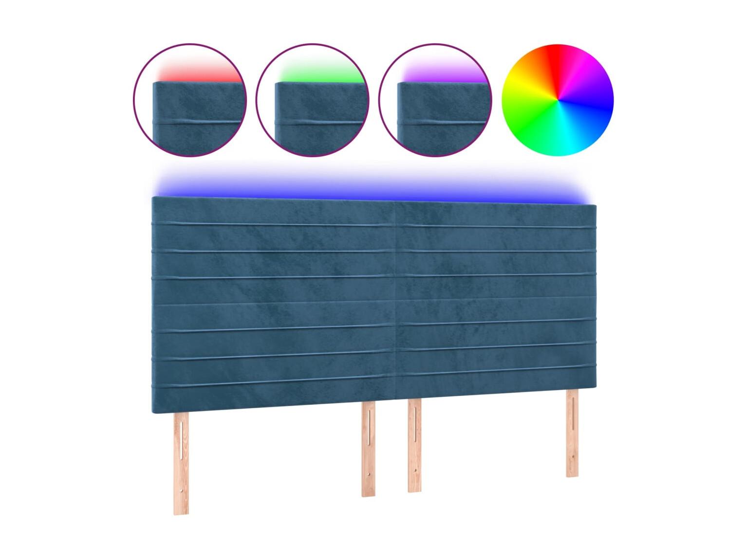 Tête de Lit | Panneau de tête pour lit Moderne à LED Bleu foncé 200x5x118/128 cm Velours