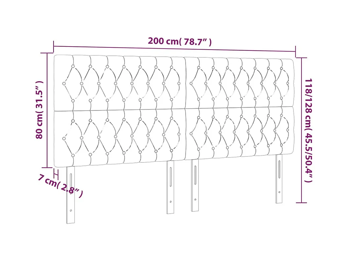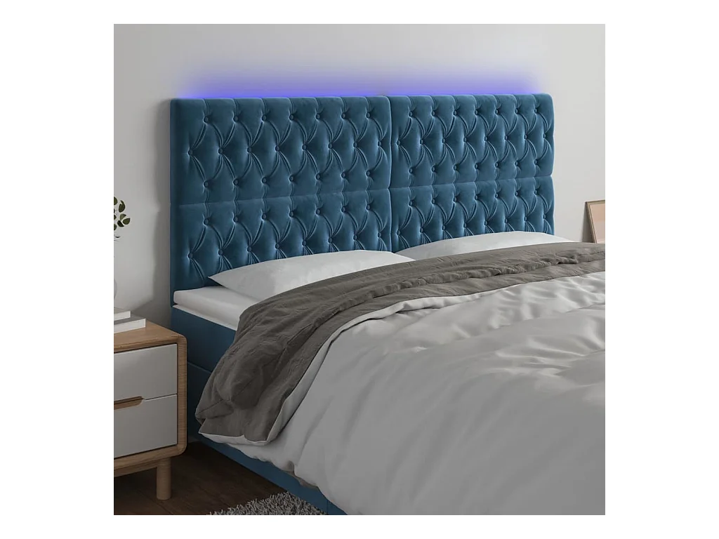 Tête de Lit | Panneau de tête pour lit Moderne à LED Bleu foncé 200x7x118/128 cm Velours