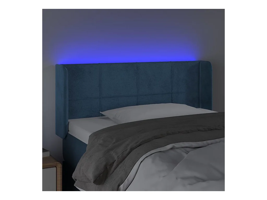 Tête de Lit | Panneau de tête pour lit Moderne à LED Bleu foncé 83x16x78/88 cm Velours