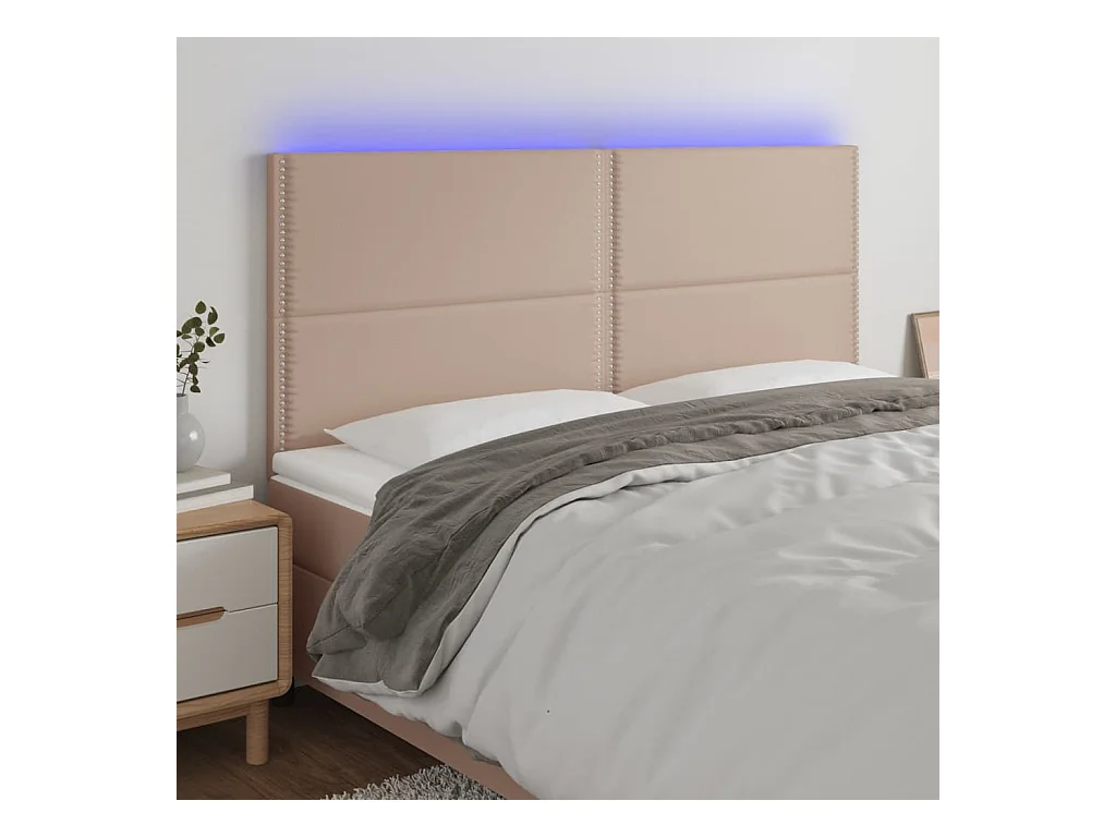 Tête de Lit | Panneau de tête pour lit Moderne à LED Cappuccino 180x5x118/128 cm Similicuir