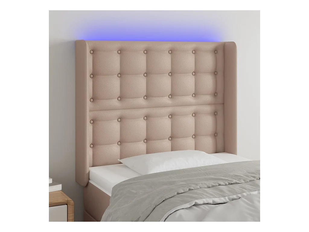 Tête de Lit | Panneau de tête pour lit Moderne à LED Cappuccino 93x16x118/128 cm Similicuir