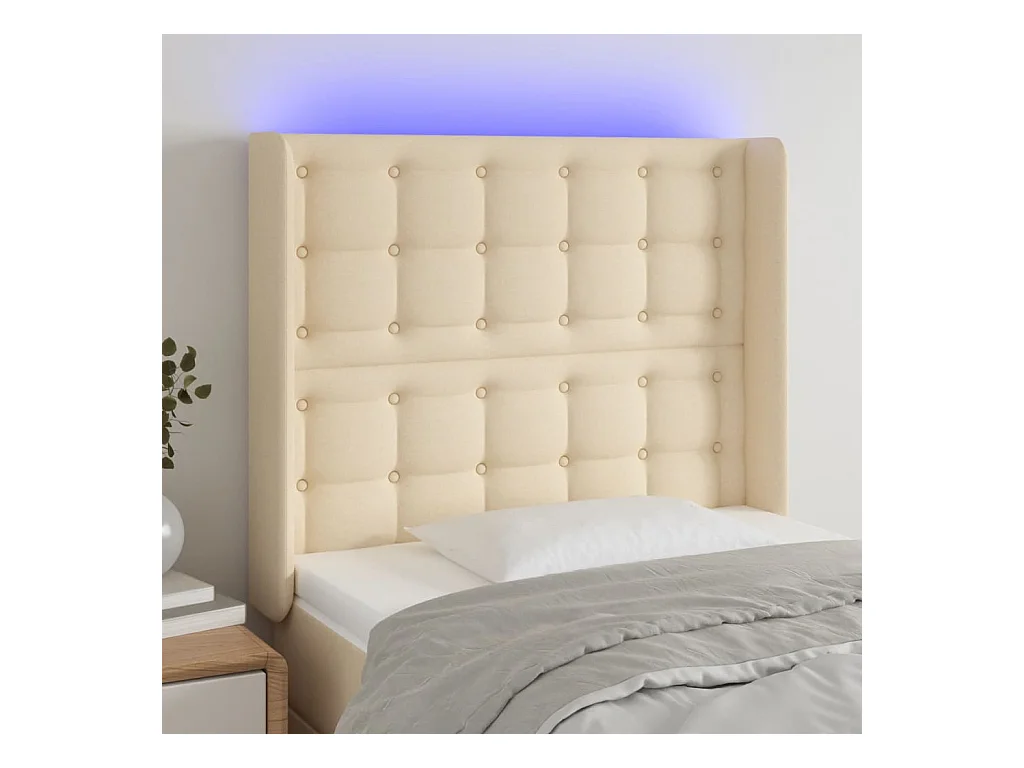 Tête de Lit | Panneau de tête pour lit Moderne à LED Crème 83x16x118/128 cm Tissu