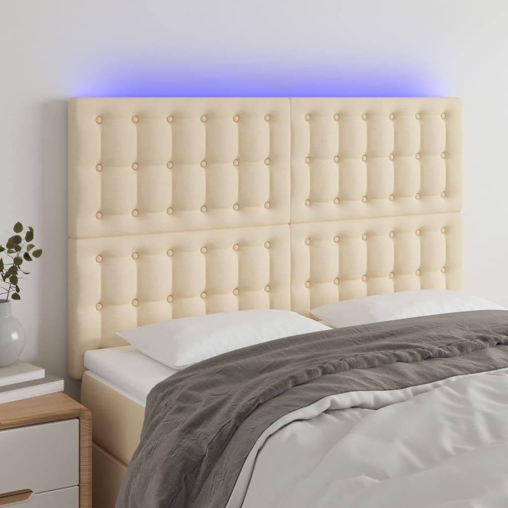 Tête de Lit | Panneau de tête pour lit Moderne à LED Crème 144x5x118/128 cm Tissu