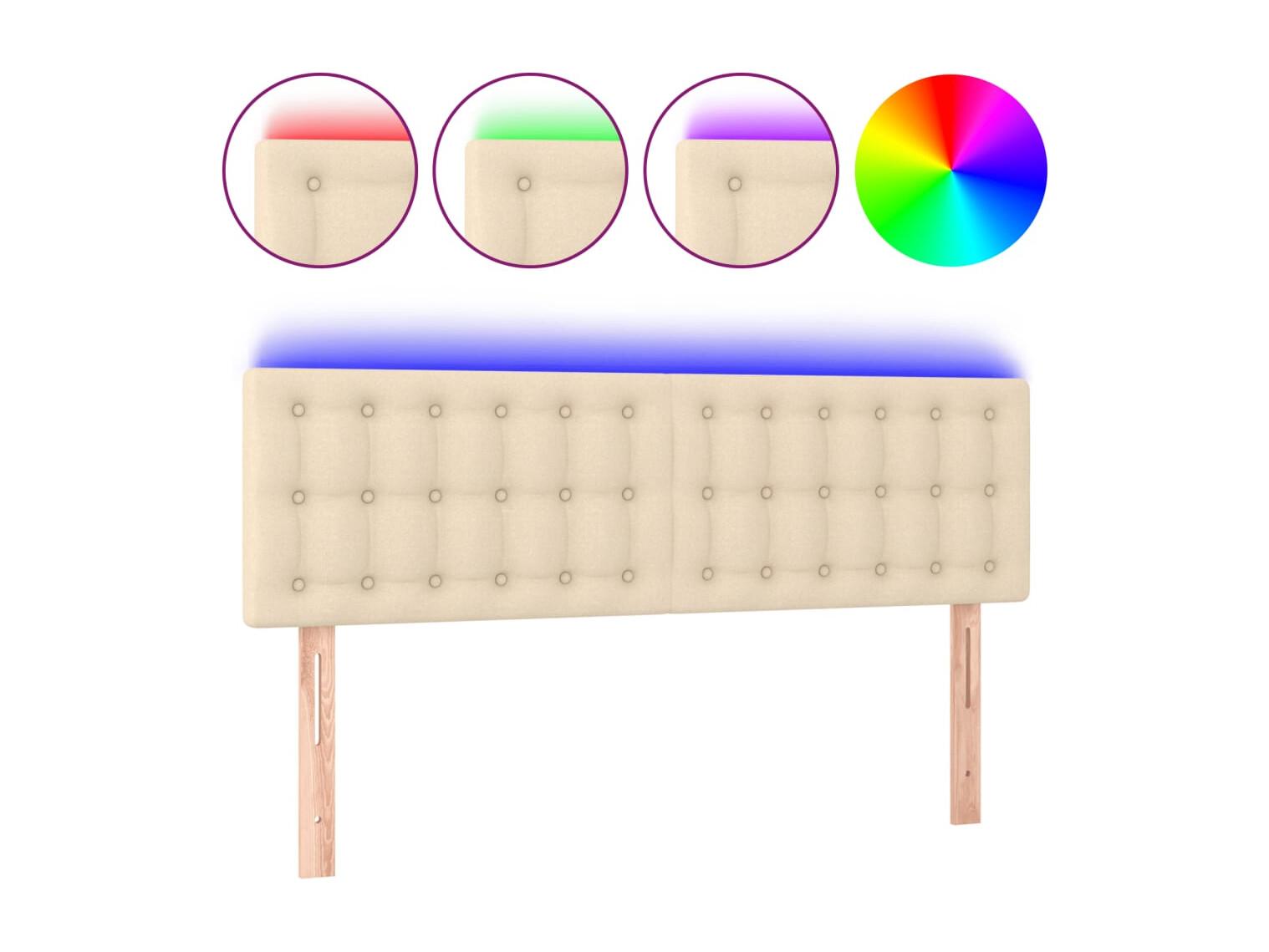 Tête de Lit | Panneau de tête pour lit Moderne à LED Crème 144x5x78/88 cm Tissu