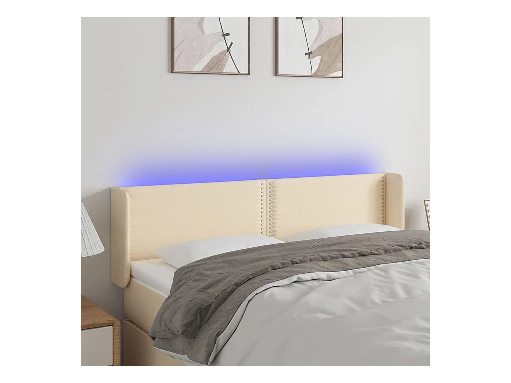 Tête de Lit | Panneau de tête pour lit Moderne à LED Crème 147x16x78/88 cm Tissu
