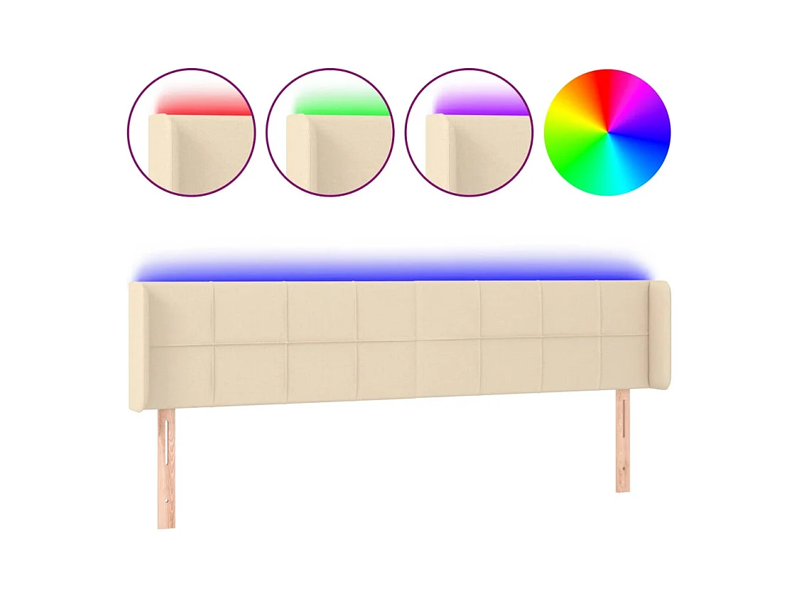 Tête de Lit | Panneau de tête pour lit Moderne à LED Crème 163x16x78/88 cm Tissu