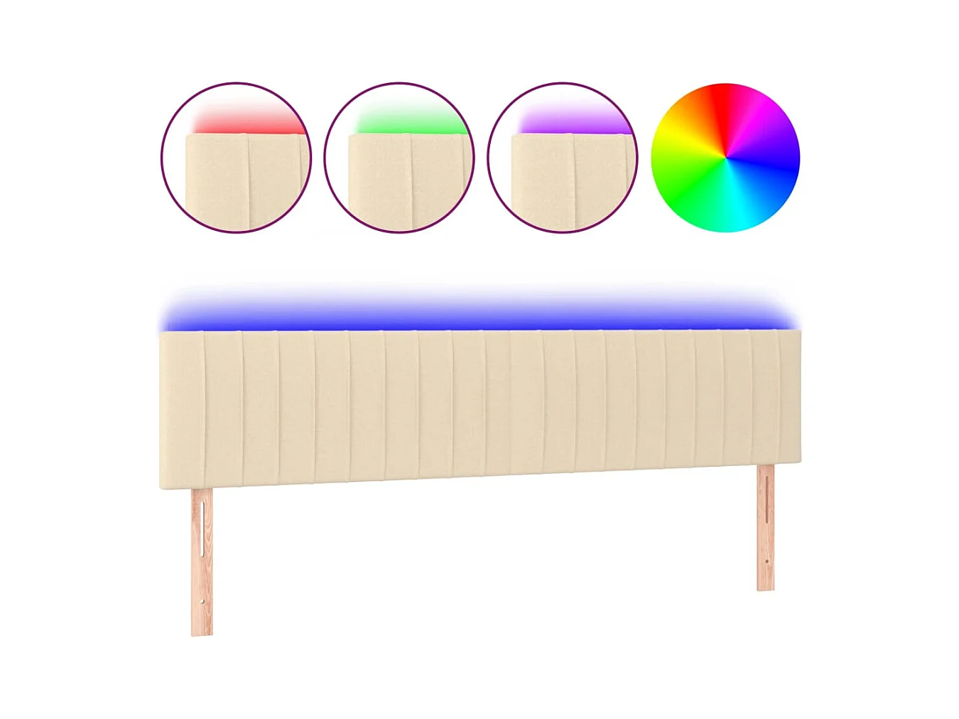 Tête de Lit | Panneau de tête pour lit Moderne à LED Crème 200x5x118/128 cm Tissu
