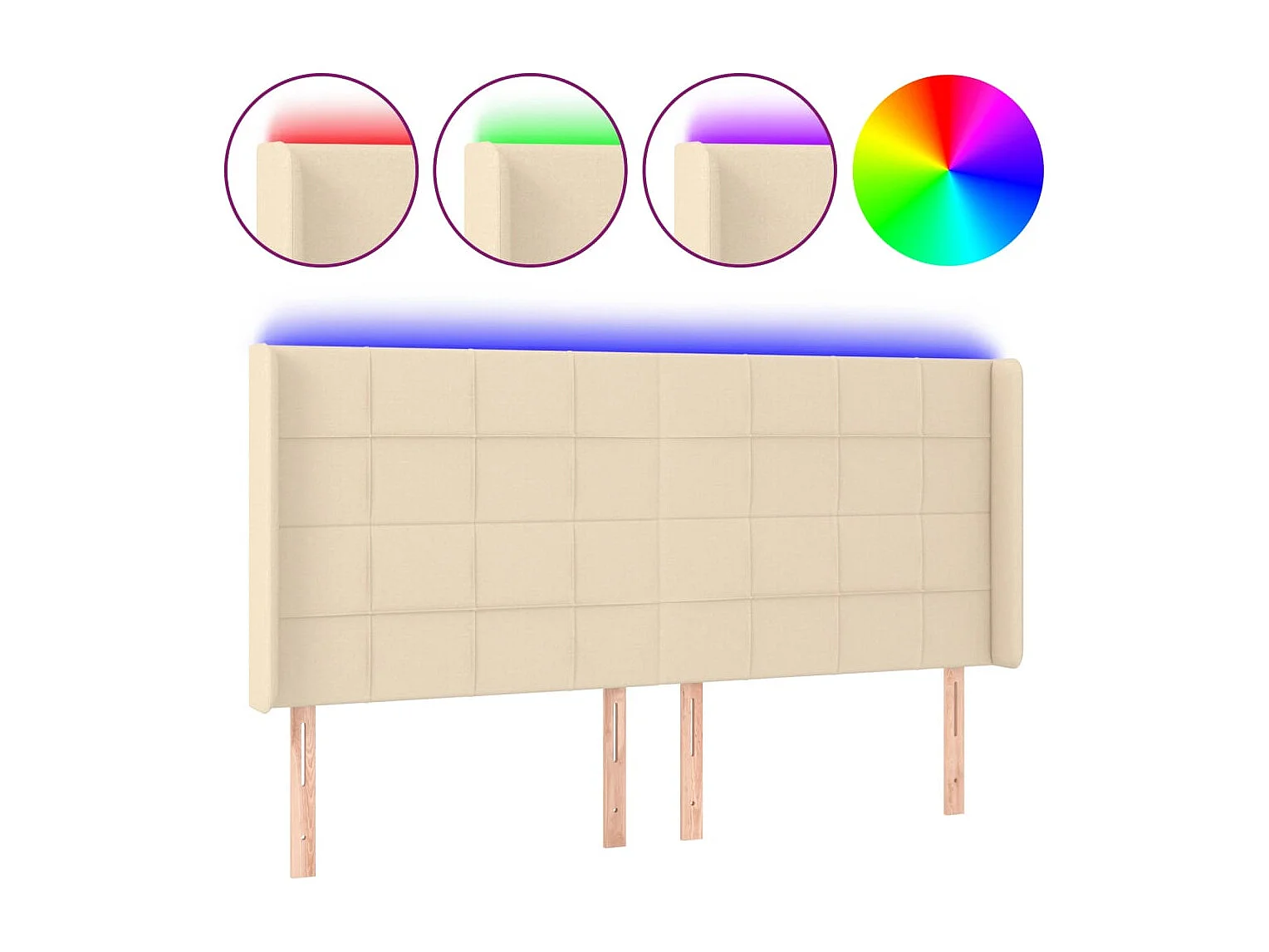 Tête de Lit | Panneau de tête pour lit Moderne à LED Crème 203x16x118/128 cm Tissu