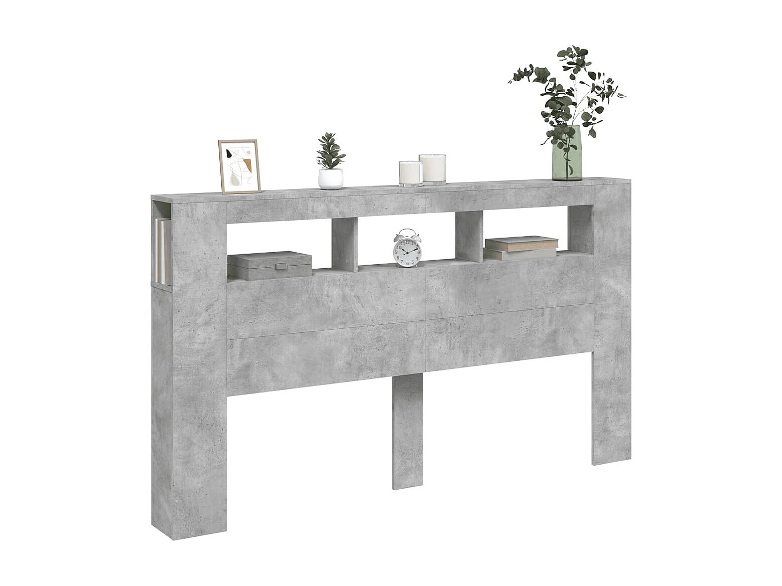 Tête de Lit avec rangement | Armoire de tête de lit avec LED gris béton 180x17x102 cm