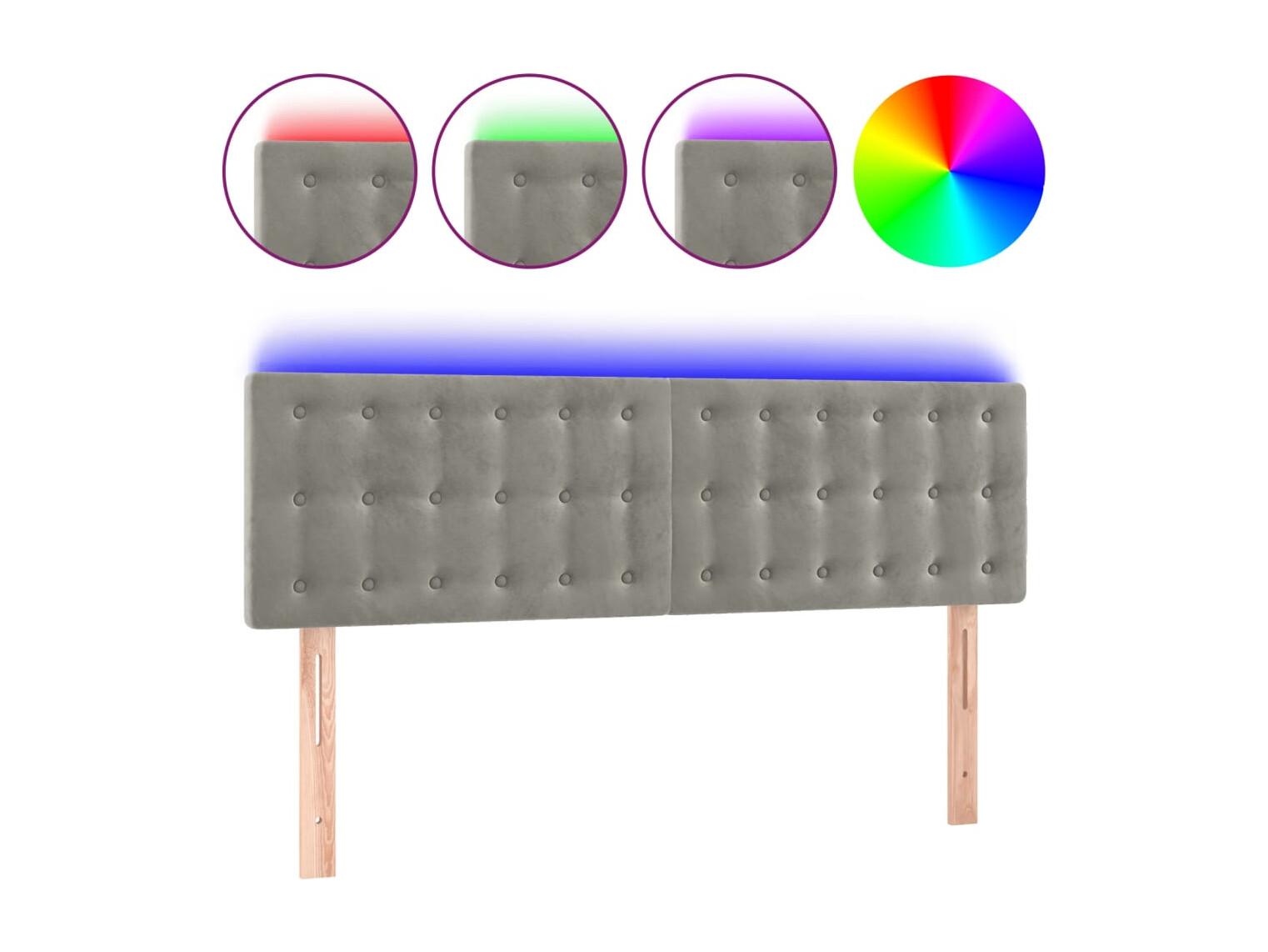 Tête de Lit | Panneau de tête pour lit Moderne à LED Gris clair 144x5x78/88 cm Velours