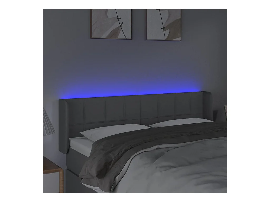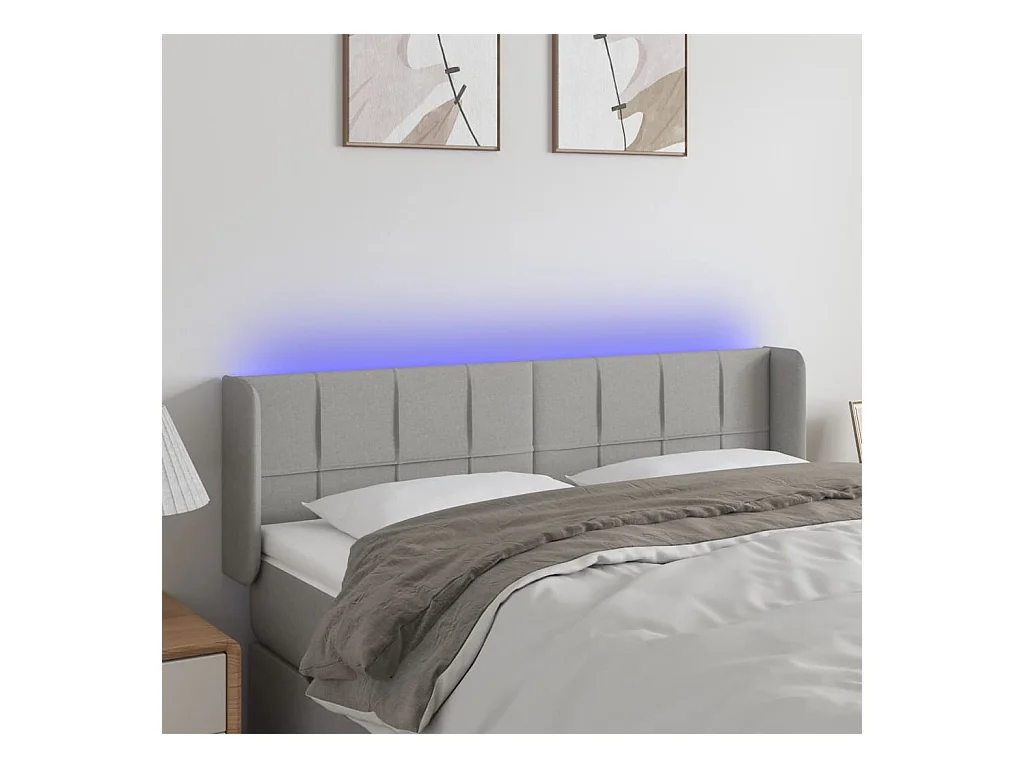 Tête de Lit | Panneau de tête pour lit Moderne à LED Gris clair 147x16x78/88 cm Tissu
