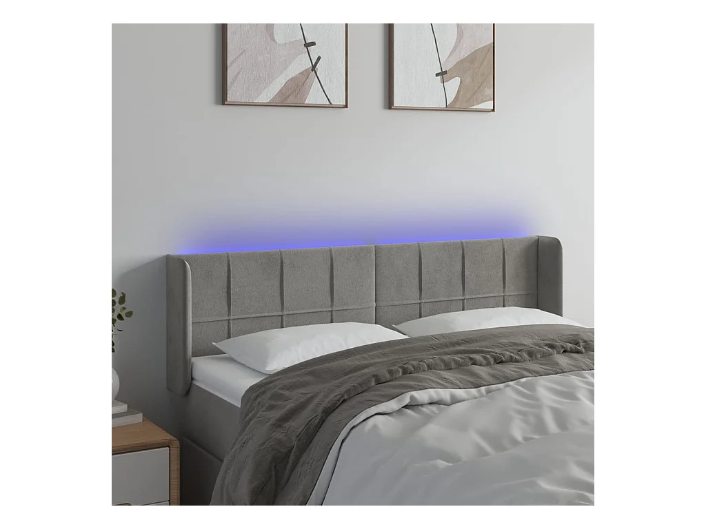 Tête de Lit | Panneau de tête pour lit Moderne à LED Gris clair 147x16x78/88 cm Velours