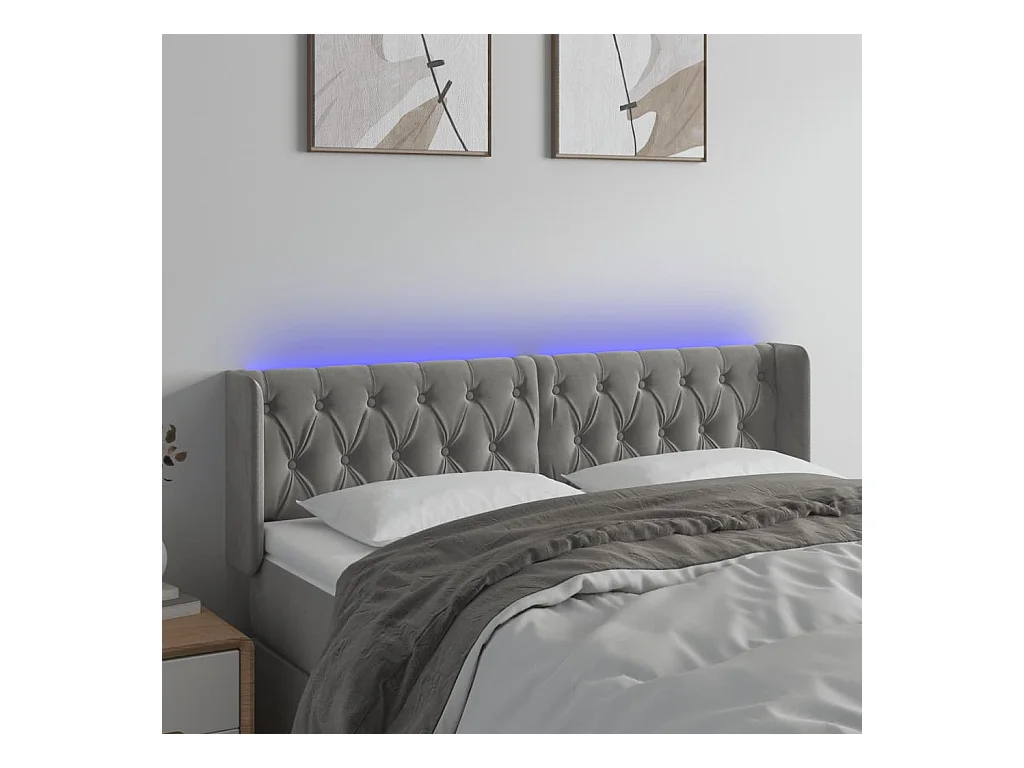 Tête de Lit | Panneau de tête pour lit Moderne à LED Gris clair 147x16x78/88 cm Velours