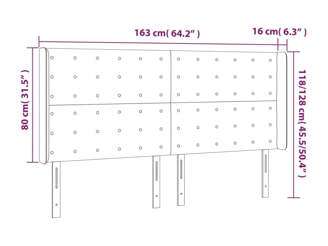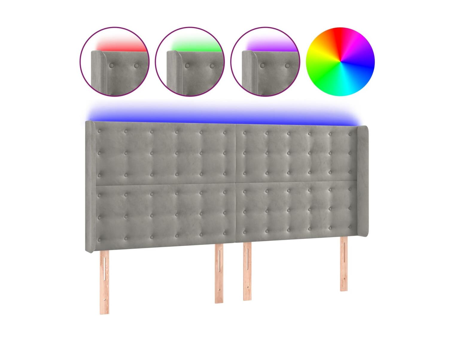 Tête de Lit | Panneau de tête pour lit Moderne à LED Gris clair 163x16x118/128 cm Velours