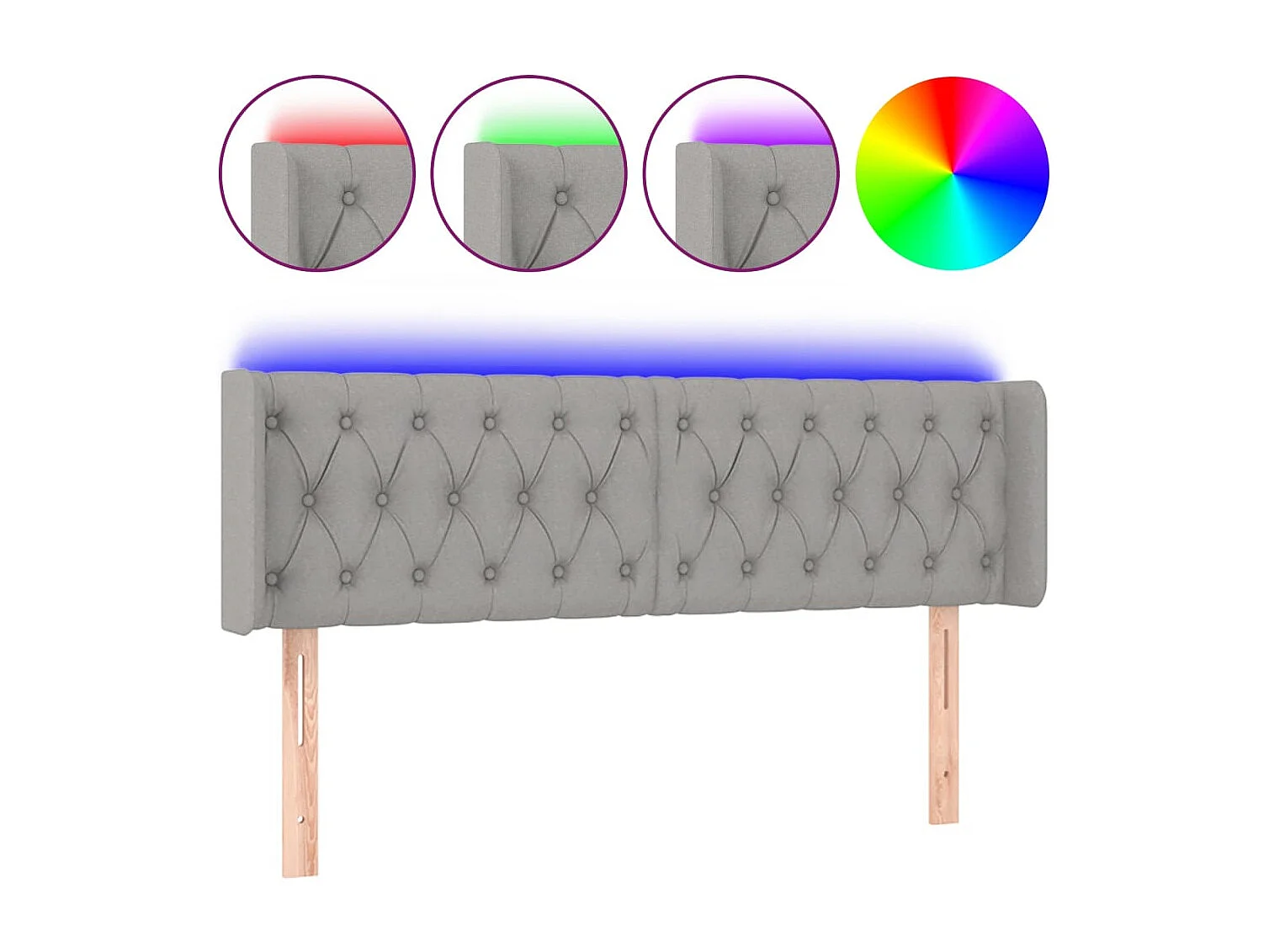 Tête de Lit | Panneau de tête pour lit Moderne à LED Gris clair 163x16x78/88 cm Tissu