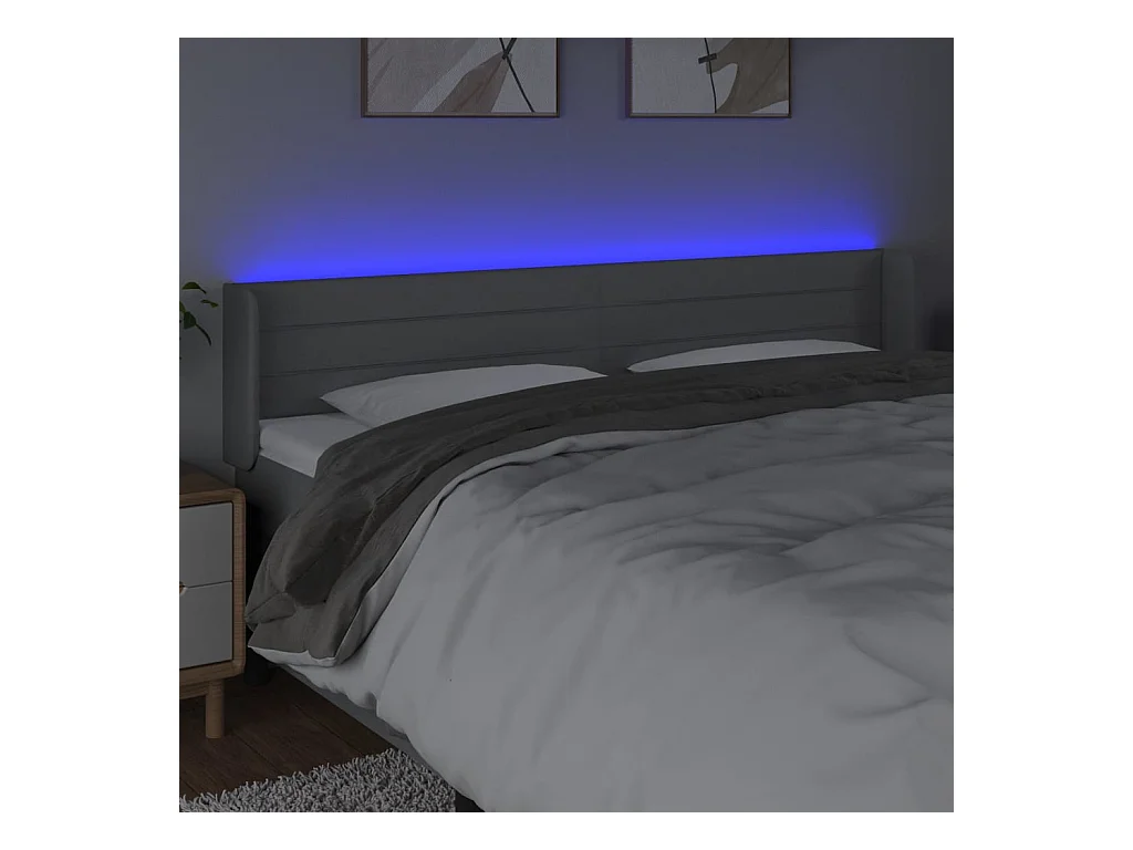 Tête de Lit | Panneau de tête pour lit Moderne à LED Gris clair 163x16x78/88 cm Tissu
