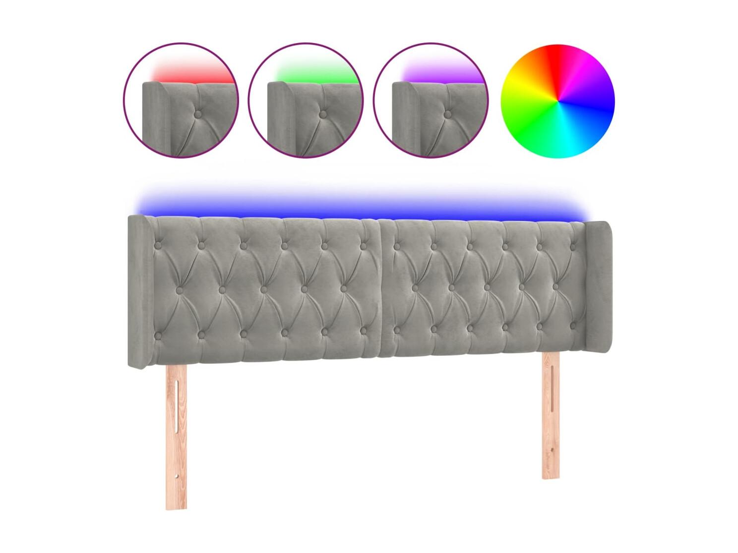 Tête de Lit | Panneau de tête pour lit Moderne à LED Gris clair 163x16x78/88 cm Velours