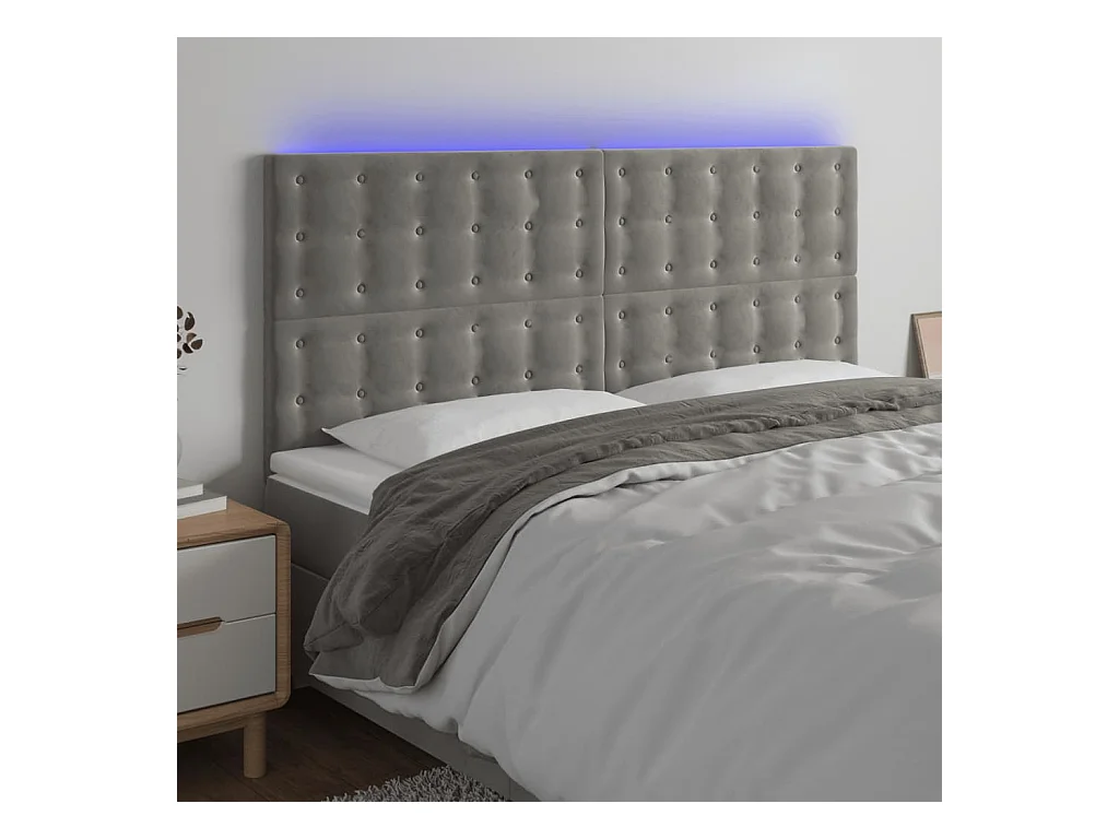 Tête de Lit | Panneau de tête pour lit Moderne à LED Gris clair 180x5x118/128 cm Velours