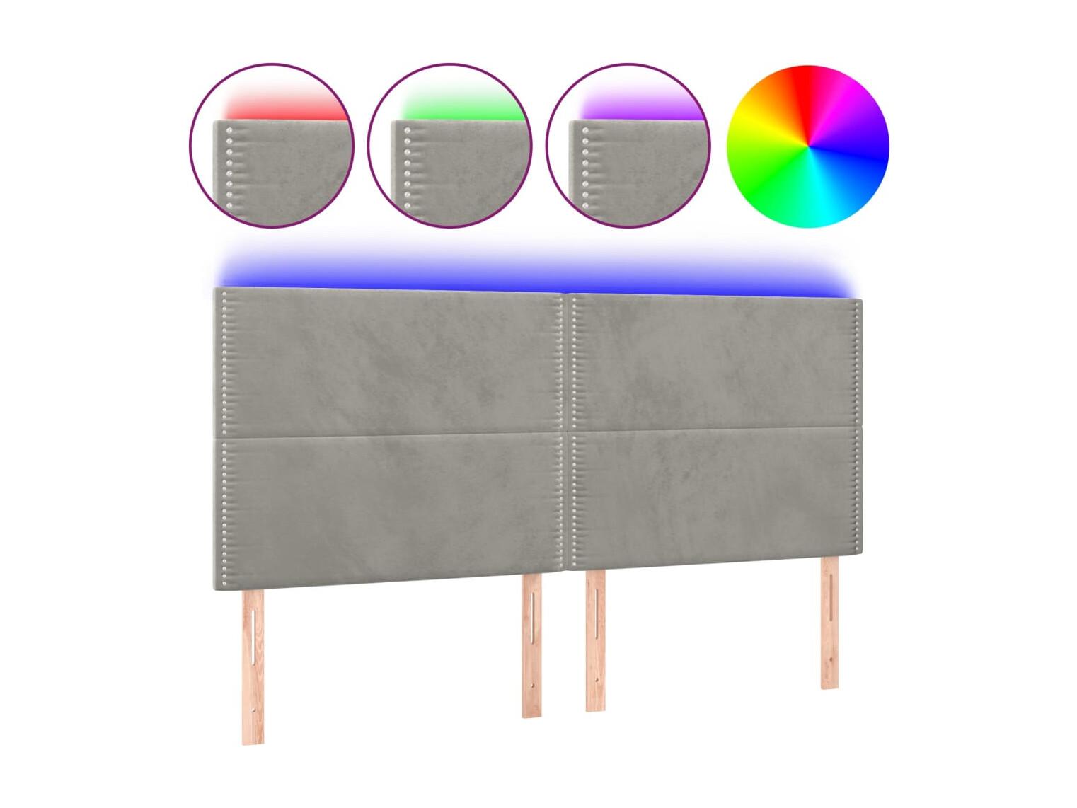 Tête de Lit | Panneau de tête pour lit Moderne à LED Gris clair 180x5x118/128 cm Velours