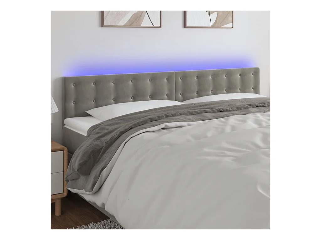 Tête de Lit | Panneau de tête pour lit Moderne à LED Gris clair 180x5x78/88 cm Velours