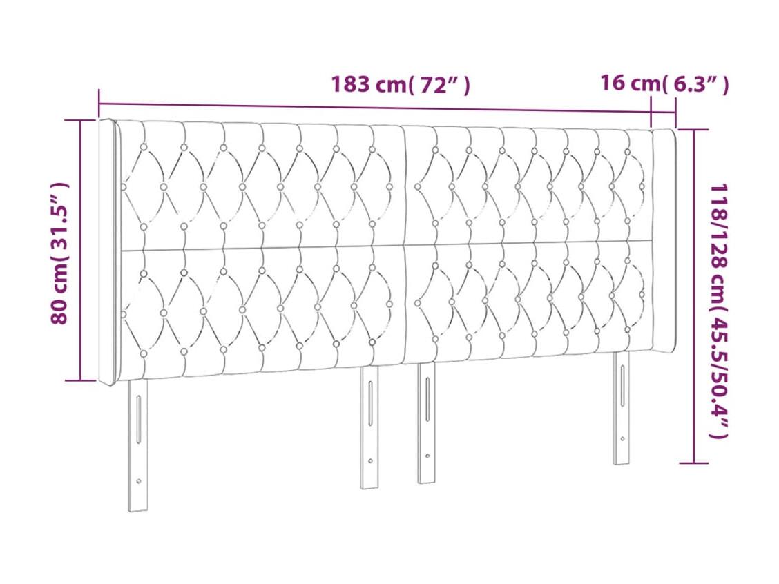 Tête de Lit | Panneau de tête pour lit Moderne à LED Gris clair 183x16x118/128 cm Velours
