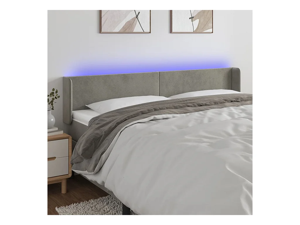 Tête de Lit | Panneau de tête pour lit Moderne à LED Gris clair 183x16x78/88 cm Velours