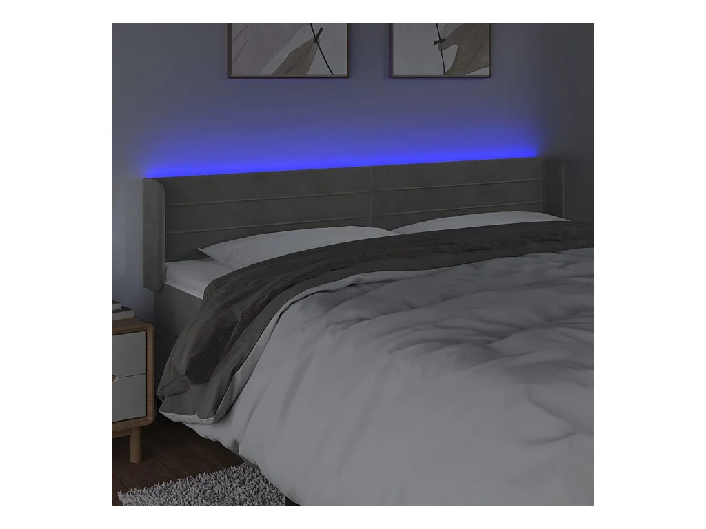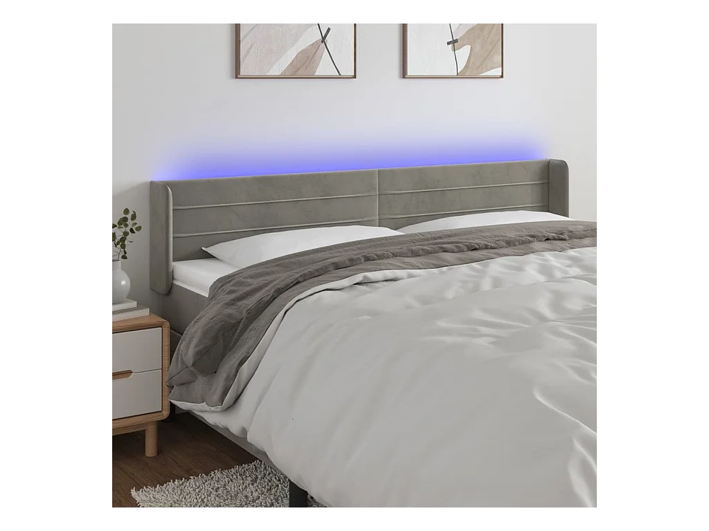 Tête de Lit | Panneau de tête pour lit Moderne à LED Gris clair 183x16x78/88 cm Velours