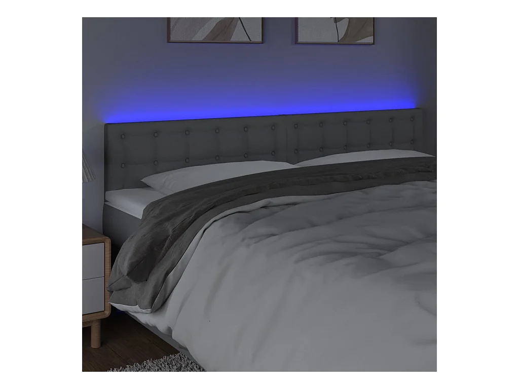 Tête de Lit | Panneau de tête pour lit Moderne à LED Gris clair 200x5x78/88 cm Tissu