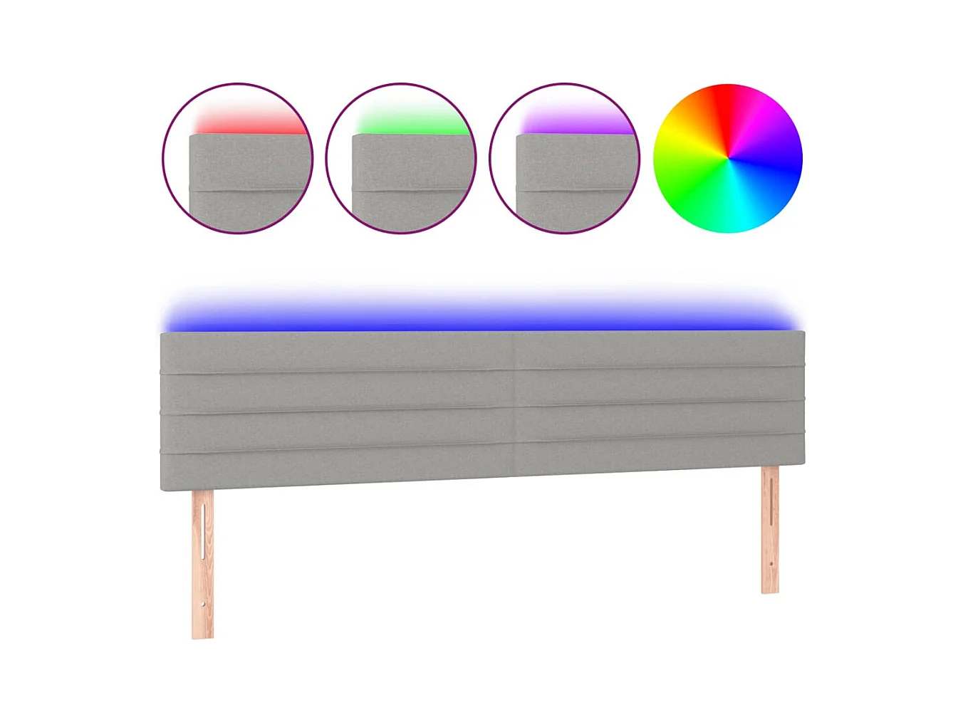 Tête de Lit | Panneau de tête pour lit Moderne à LED Gris clair 200x5x78/88 cm Tissu