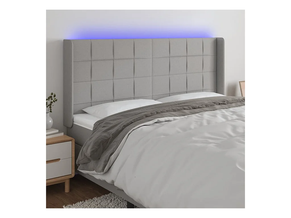 Tête de Lit | Panneau de tête pour lit Moderne à LED Gris clair 203x16x118/128 cm Tissu