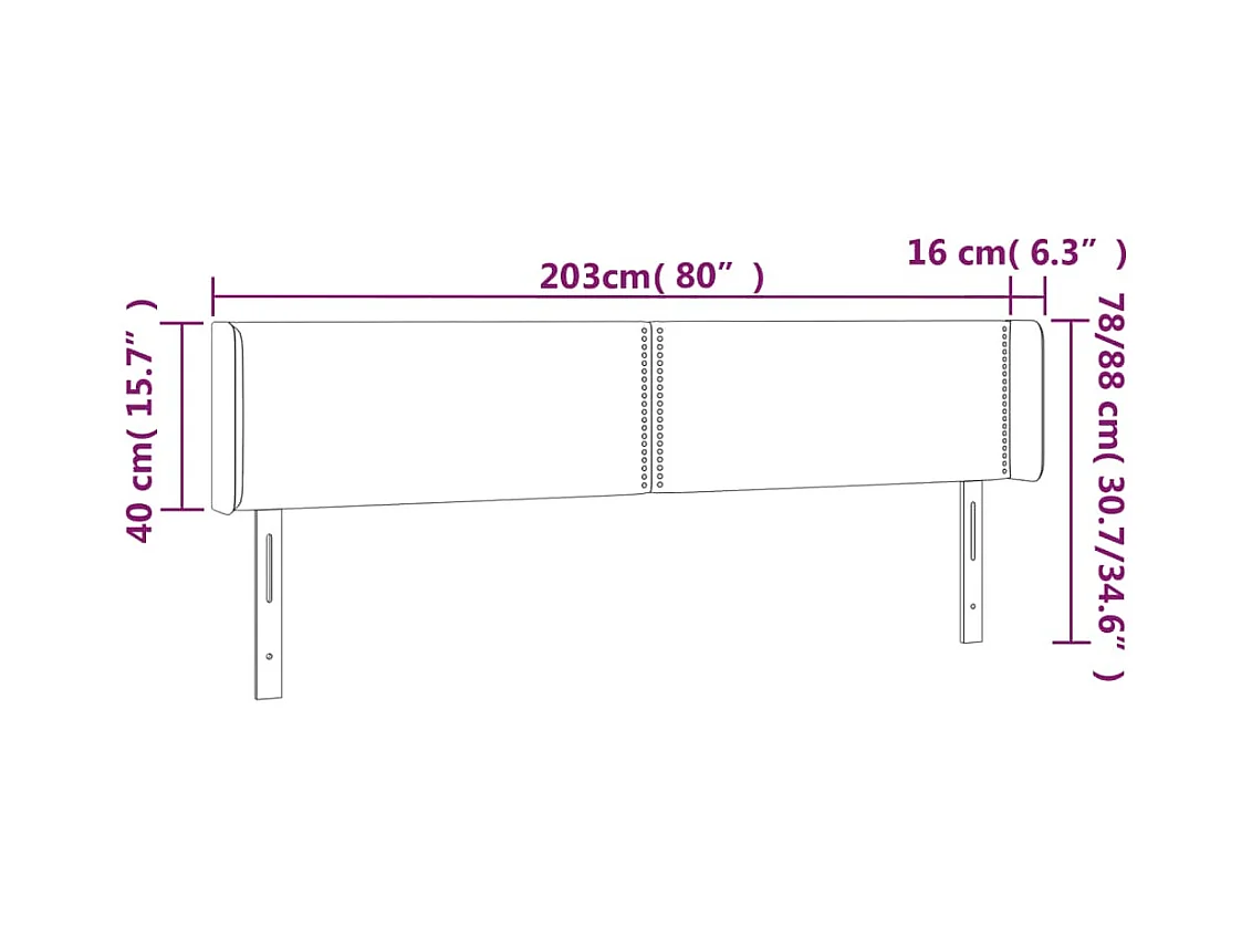 Tête de Lit | Panneau de tête pour lit Moderne à LED Gris foncé 203x16x78/88 cm Velours