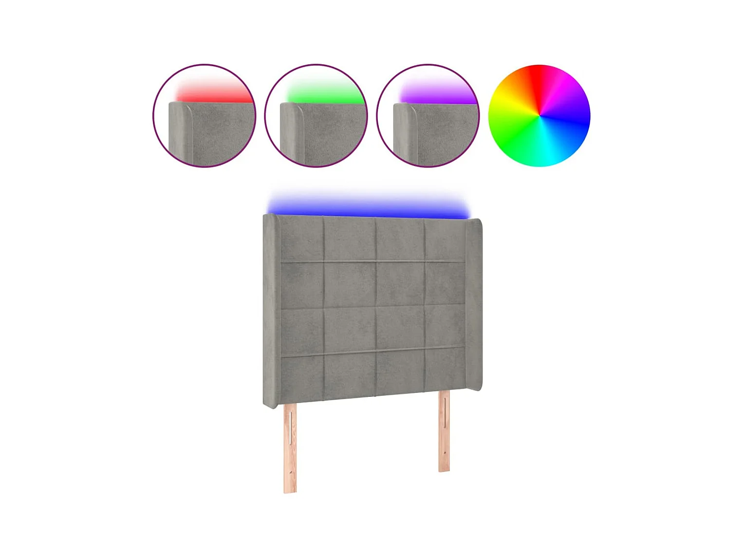 Tête de Lit | Panneau de tête pour lit Moderne à LED Gris clair 83x16x118/128 cm Velours
