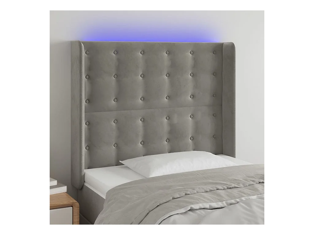 Tête de Lit | Panneau de tête pour lit Moderne à LED Gris clair 93x16x118/128 cm Velours
