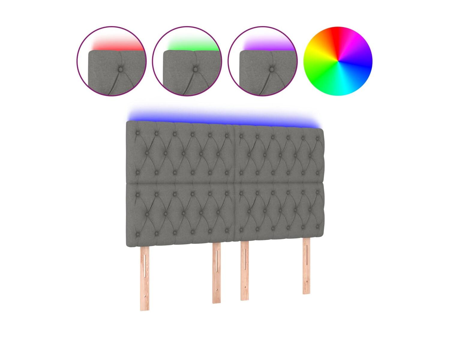 Tête de Lit | Panneau de tête pour lit Moderne à LED Gris foncé 144x7x118/128 cm Tissu