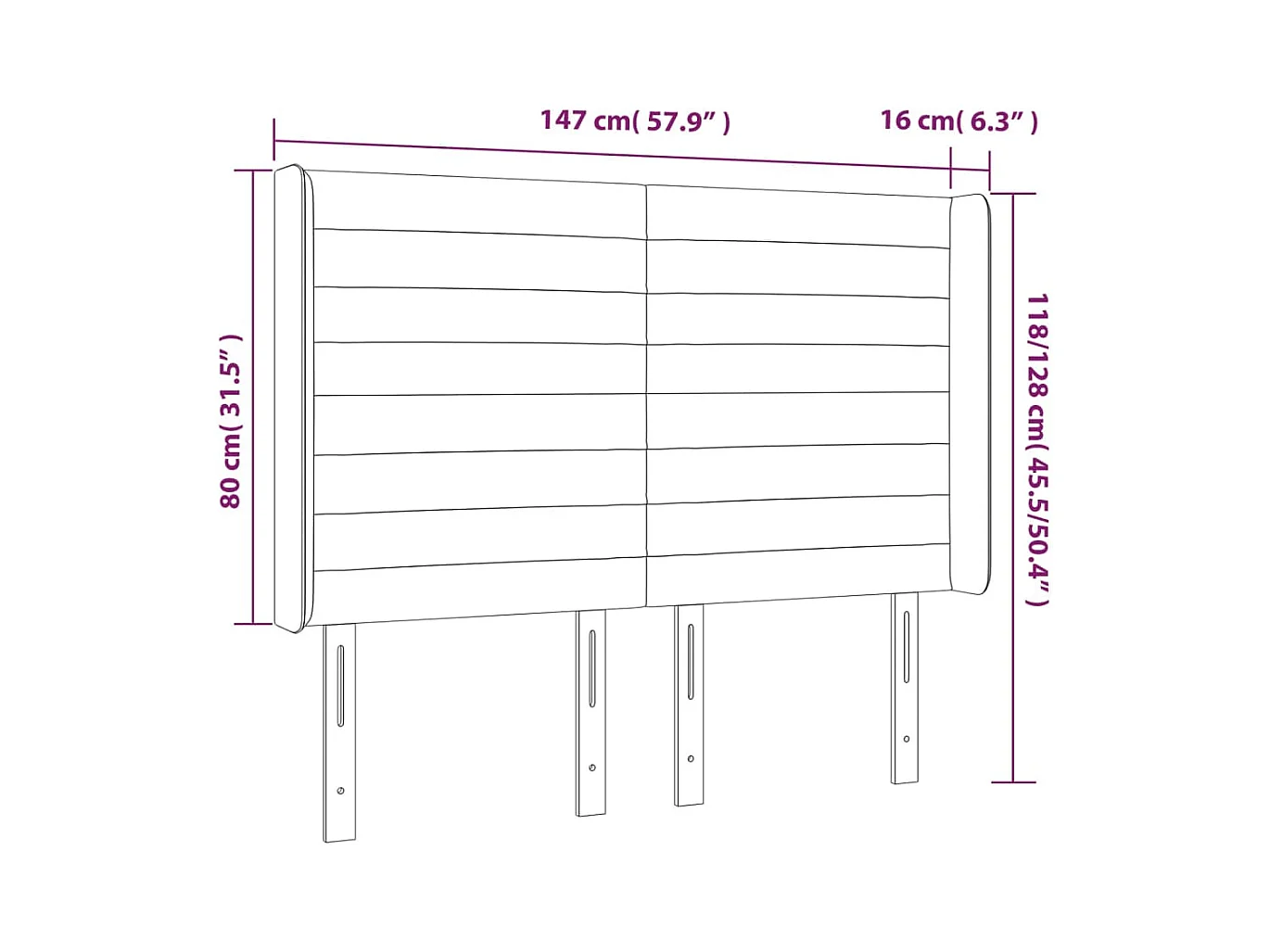 Tête de Lit | Panneau de tête pour lit Moderne à LED Gris foncé 147x16x118/128 cm Tissu