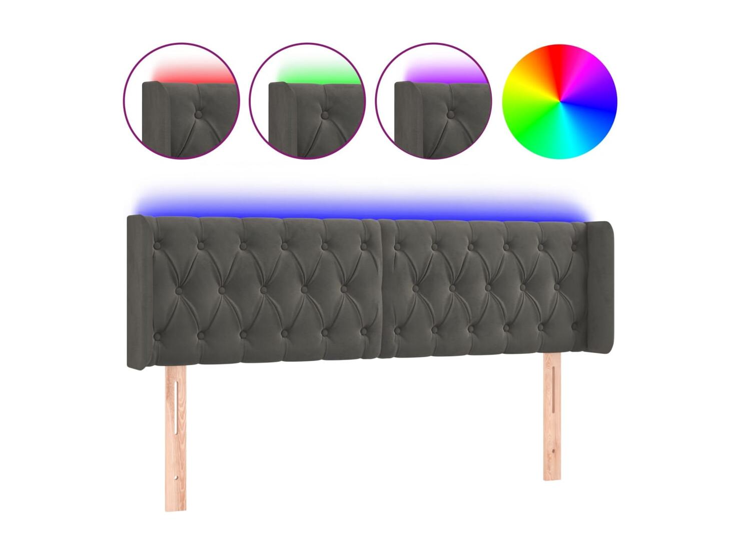 Tête de Lit | Panneau de tête pour lit Moderne à LED Gris foncé 163x16x78/88 cm Velours