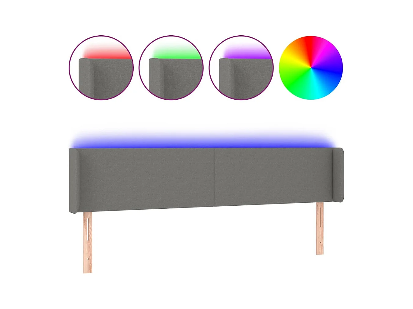 Tête de Lit | Panneau de tête pour lit Moderne à LED Gris foncé 183x16x78/88 cm Tissu