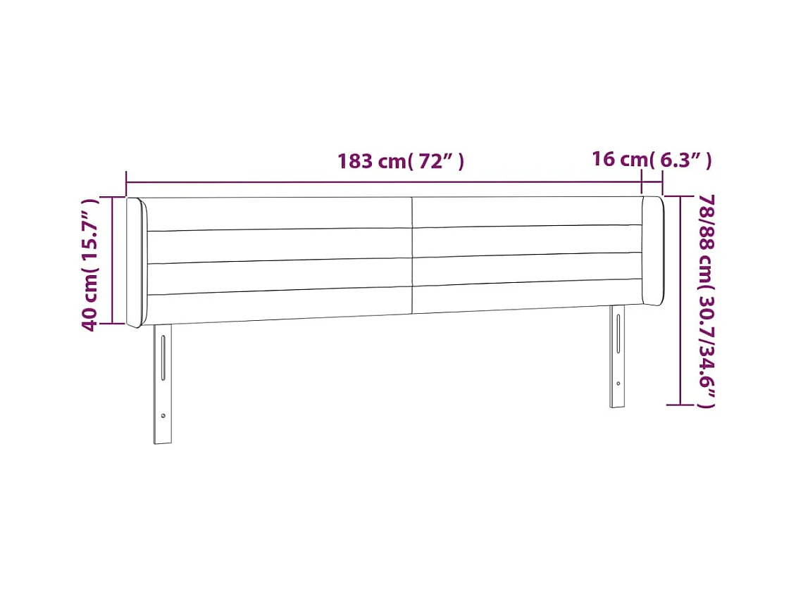 Tête de Lit | Panneau de tête pour lit Moderne avec oreilles Gris foncé 183x16x78/88 cm Velours