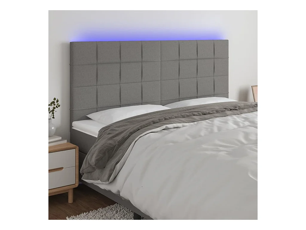 Tête de Lit | Panneau de tête pour lit Moderne à LED Gris foncé 200x5x118/128 cm Tissu