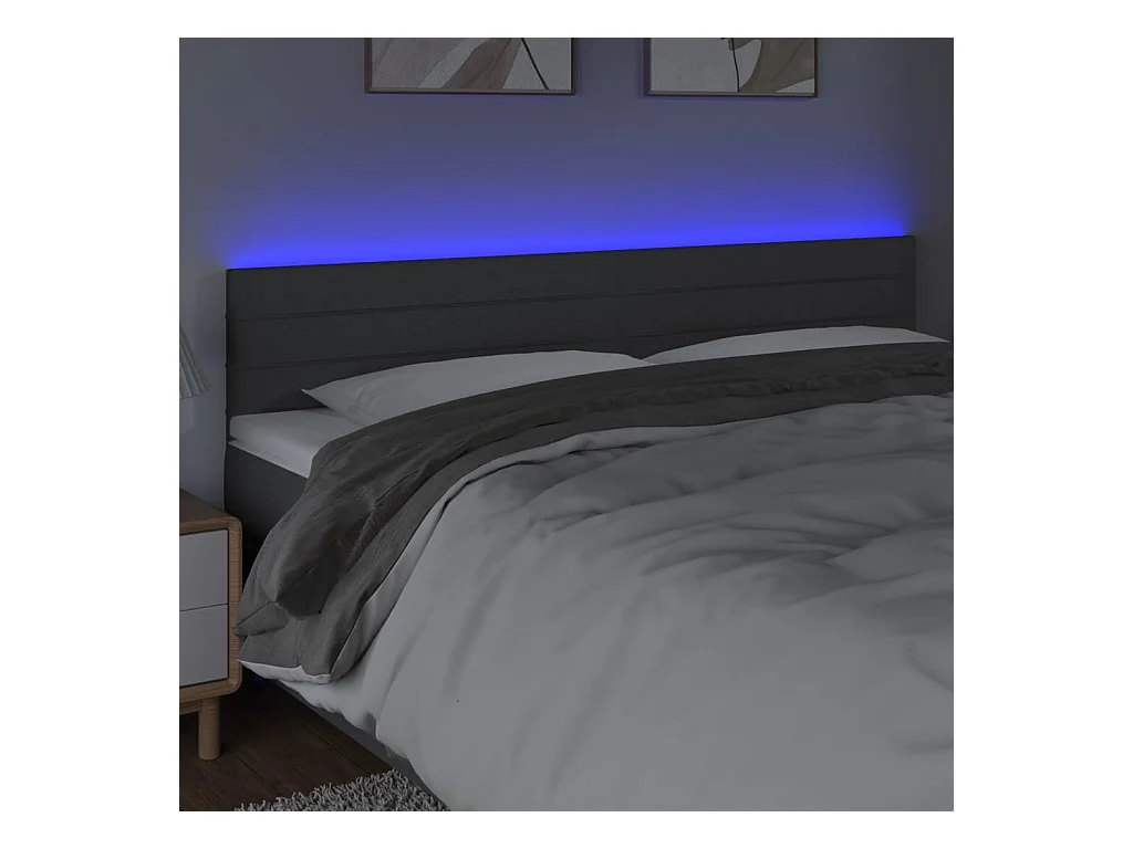 Tête de Lit | Panneau de tête pour lit Moderne à LED Gris foncé 200x5x78/88 cm Tissu