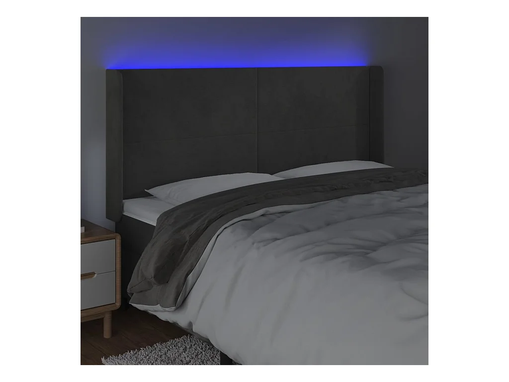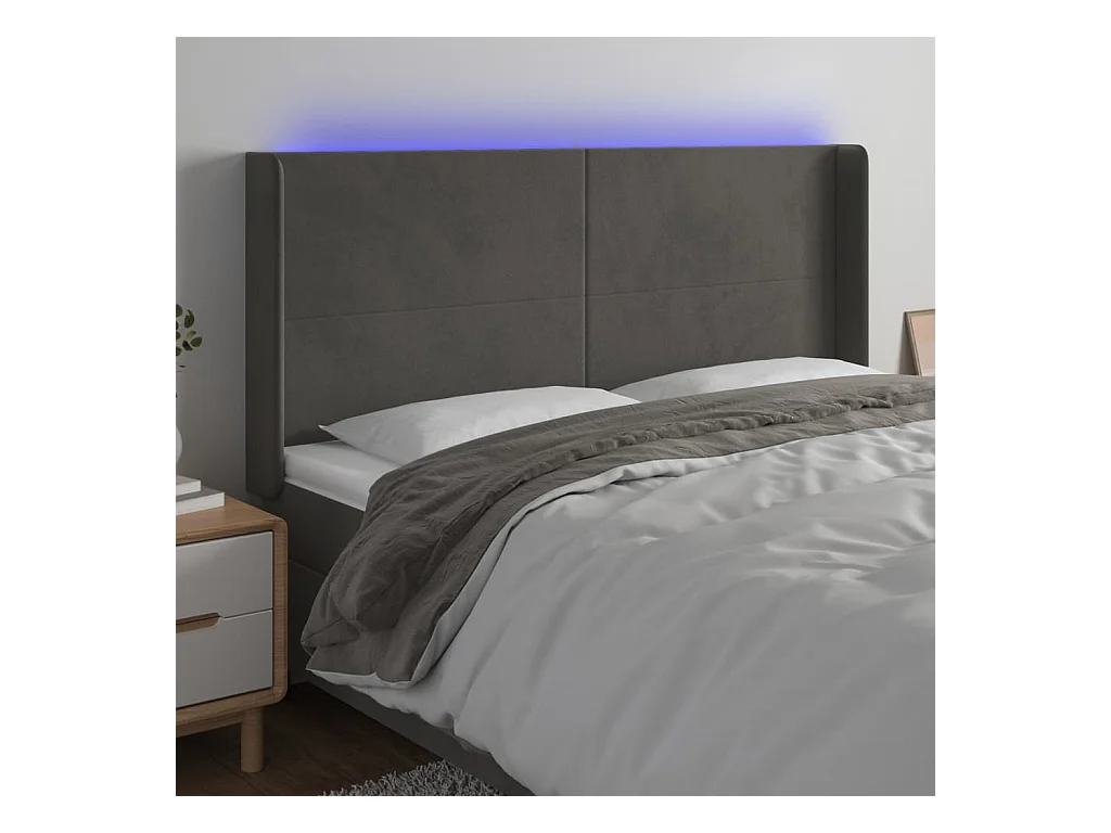 Tête de Lit | Panneau de tête pour lit Moderne à LED Gris foncé 203x16x118/128 cm Velours