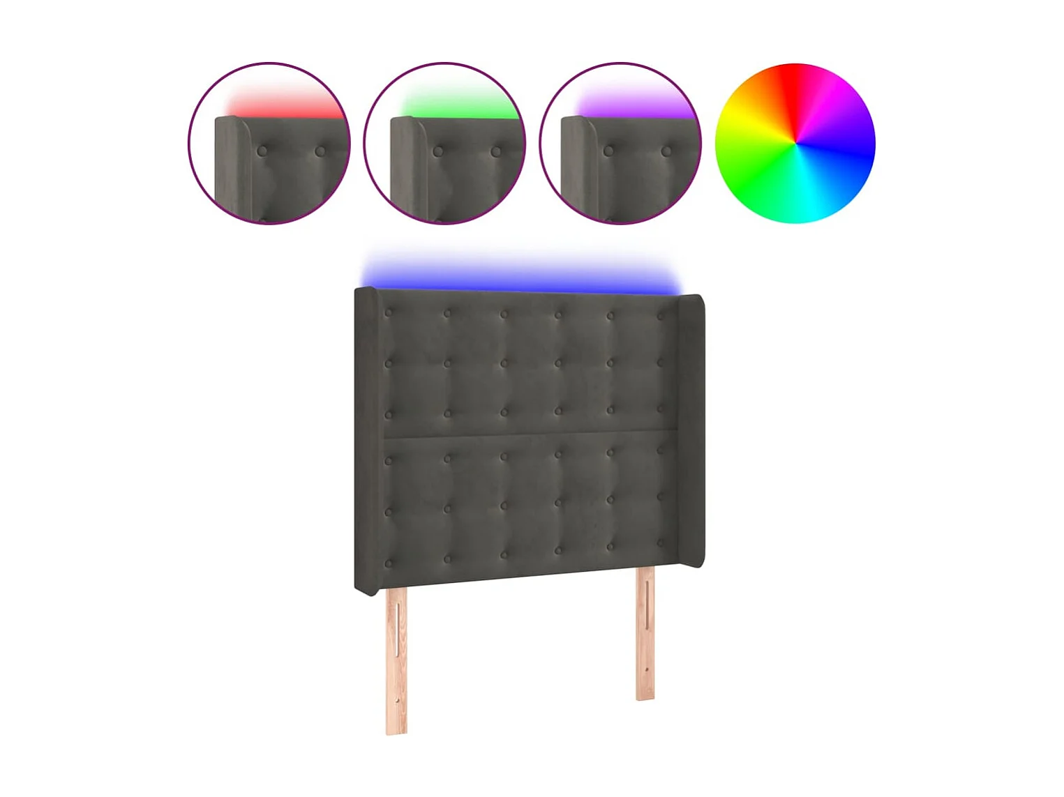 Tête de Lit | Panneau de tête pour lit Moderne à LED Gris foncé 83x16x118/128 cm Velours