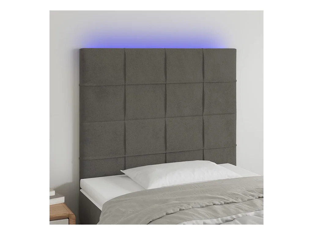 Tête de Lit | Panneau de tête pour lit Moderne à LED Gris foncé 90x5x118/128 cm Velours
