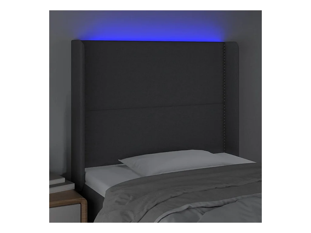 Tête de Lit | Panneau de tête pour lit Moderne à LED Gris foncé 93x16x118/128 cm Tissu