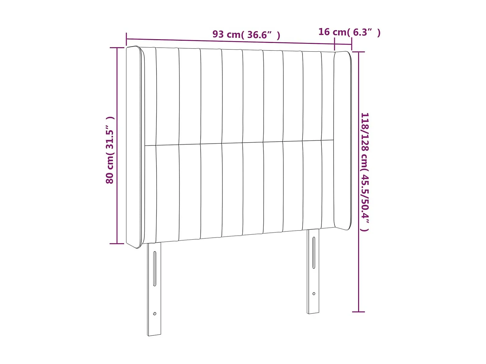 Tête de Lit | Panneau de tête pour lit Moderne avec oreilles Gris foncé 93x16x118/128 cm Tissu