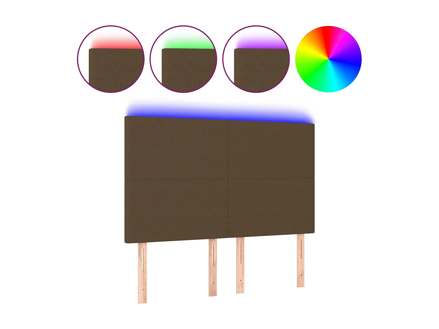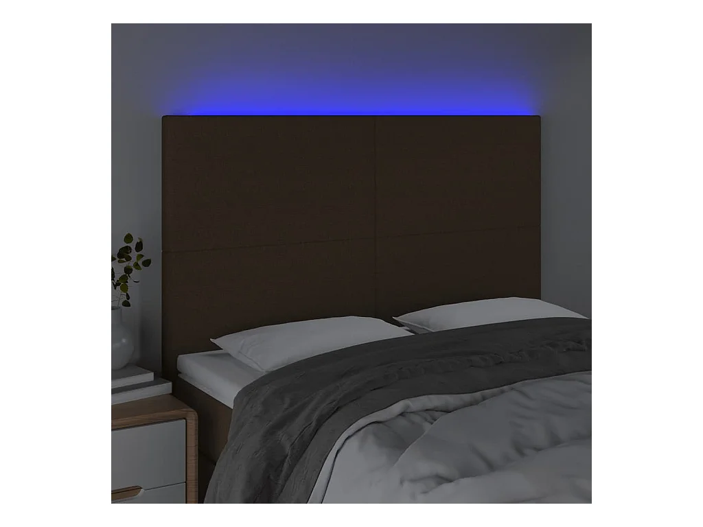 Tête de Lit | Panneau de tête pour lit Moderne à LED Marron foncé 144x5x118/128 cm Tissu