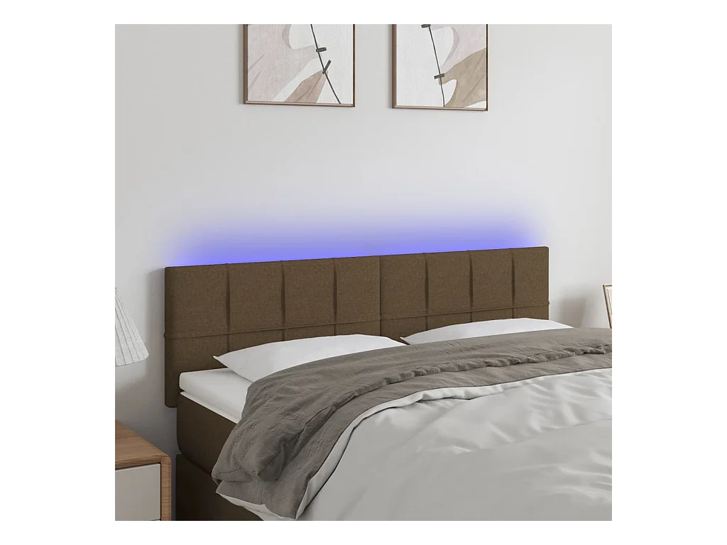 Tête de Lit | Panneau de tête pour lit Moderne à LED Marron Foncé 144x5x78/88 cm Tissu
