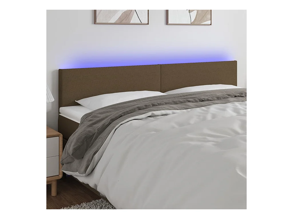 Tête de Lit | Panneau de tête pour lit Moderne à LED Marron Foncé 180x5x78/88 cm Tissu